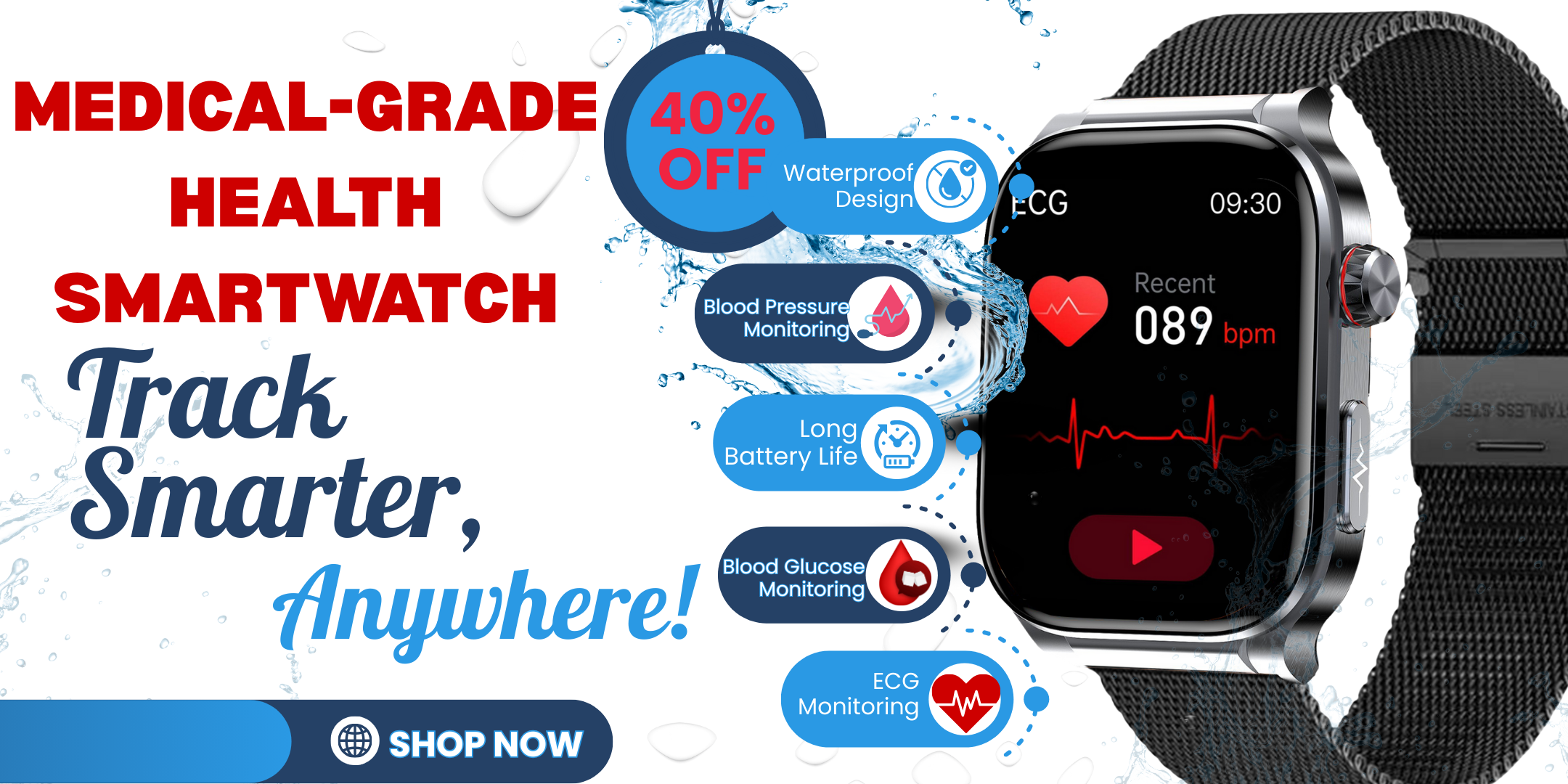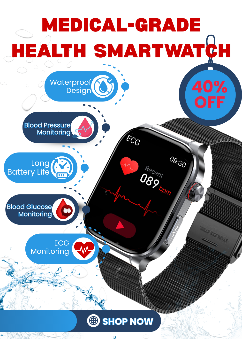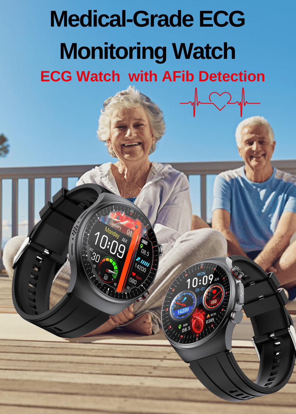 PH580 ECG/EKG Blood Sugar Blood Pressure Call Intelligent Health Management Smart Watch